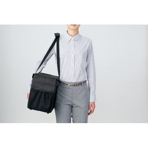 撥水仕様の生地で外出時でも使いやすいミーティングバッグ!持ち手の長さが調節できるから長距離の移動もラクラク!緩衝材入りのポケットや小分けできるポケット付だから、外出先でも簡単に出し入れができます! |