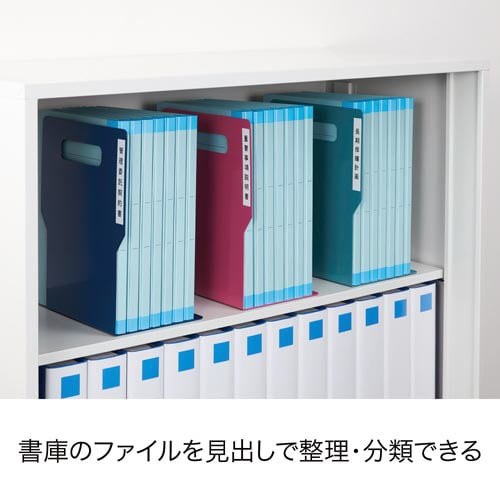 見出しがあることで棚内のファイルを整理しながら種類ごとや日付毎などの分類がしやすい!見出しを見れば、探しているファイルが見つけやすく、戻す場所も分かりやすくなる共有書庫の検索性が上がる商品です。 |