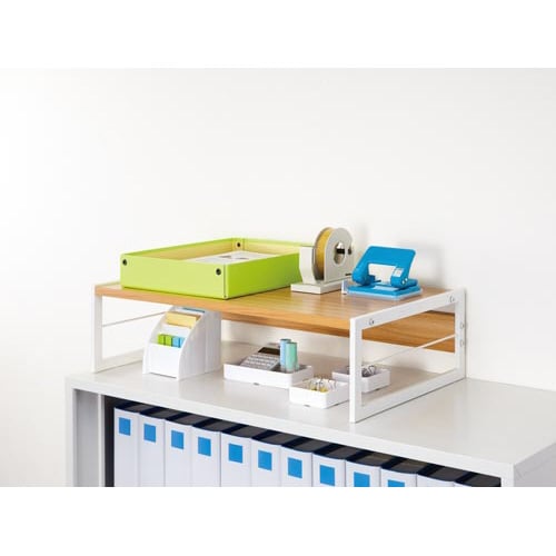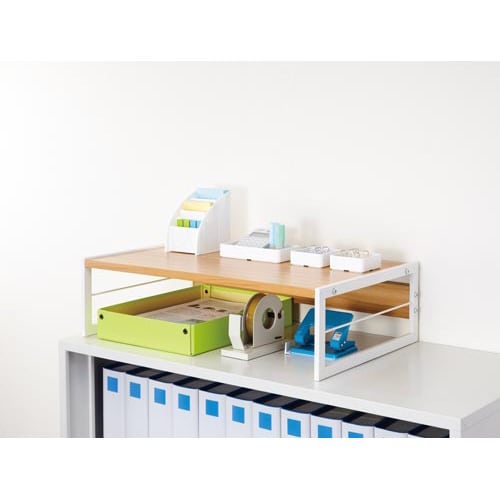 オフィスのキャビネットの上や、作業台の上にぴったりな収納棚。アーチ形状で収納スペースや作業スペースも広がります!下部にはA4書類トレーがぴったり入るサイズ設計です。 |