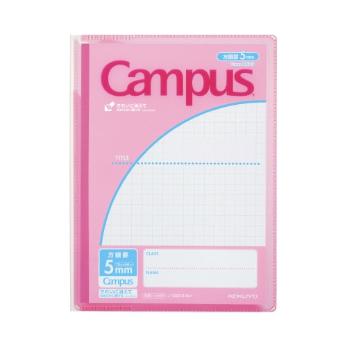 キャンパスプリント整とんカバーノート 桃 セミB5(6号)対応 5mm方眼罫(10mm実線入り) 30枚 1冊 ノ−623S10−5P