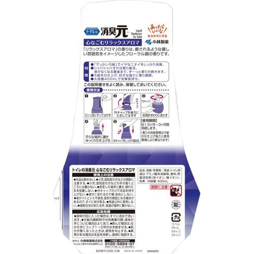 トイレの消臭元心なごむリラックスアロマ400ml 幅100×奥行80×高さ176mm 1個 29701 トイレ用消臭剤 芳香剤
