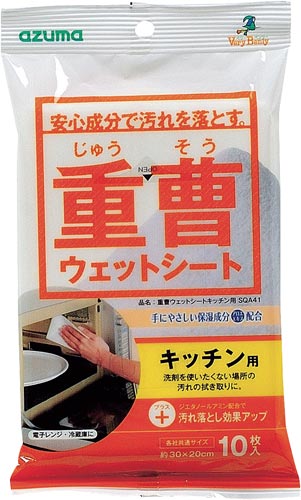 食品添加物レベルの重曹を使い、手にやさしい保湿成分アロエエキスを配合したウェットシートです。安心成分の重曹が汚れをしっかり除去してくれます。 |