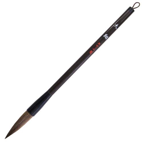 この筆は学校書道高級品として、また趣味の書道の練習用として楷書にも行書にも使えます。通常より太く、半紙2字、全紙8分の1用にも使用でき、鋭さと柔らかさを合わせて表現するよう作られています。 |