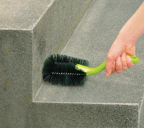 頑固な泥汚れをゴシゴシ落とします。直角カットなので、角にも届きやすい形状です。壁・ブロック塀・玄関まわりのコケ・泥落としにお使いください。 |