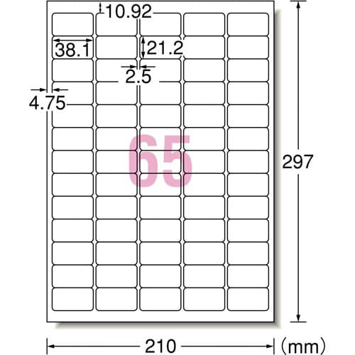 スーパーエコノミーラベル65面四辺余白角丸500枚 A4 65面四辺余白付角丸 プリンタ兼用タイプ 1箱( L65AM500N ラベルシール ラベル用紙(スタンダードタイプ)