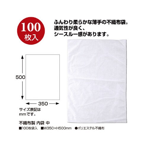 不織布製 内袋 中 幅350mm×高さ500mm 1包(100枚入) 50−1261