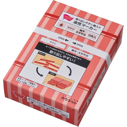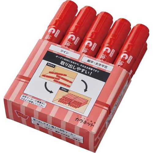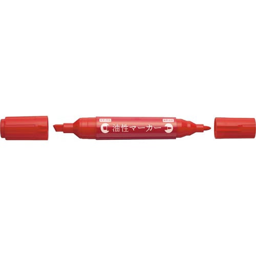 油性マーカーツイン細字・太字平芯赤1箱 インク色赤 細字丸芯1.8mm、太字平芯1から5mm 1箱(10本入) 4313−2812×10 油性マーカー(ツイン)
