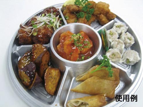 焼肉・バーベキューのセットはもちろん、オードブルなどにも適した金属光沢の美しい使い捨ての洋皿容器。フタは別売り。 |