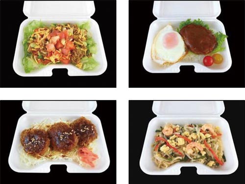 フタ・本体一体型タイプの使い捨てかんごう弁当容器。片手で持ちやすいくぼみ形状で、深さもあります。V字ロックでしっかりフタが閉まるので、輪ゴム・テープ不要。 |