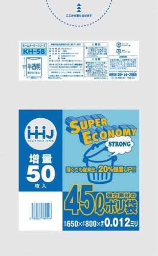 ポリ袋 45L 半透明 0.012mmり 650×800mm 1パック(50枚入) KH58 ゴミ袋(高密度ポリエチレン)