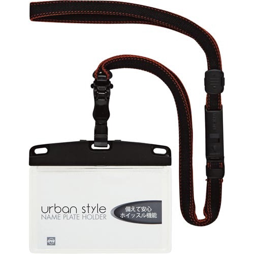 タッグ名札としても使える2WAYタイプの吊り下げ名札。防災・防犯用ホイッスルがストラップに組み込まれています。