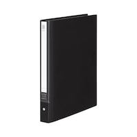 「背幅が変わる」機能と「ガイド機能付き専用ポケット」により従来品に比べて約1.5倍のポケットを収容することができます。レバーを立ててとじ具をロックすれば衝撃でリングが開いてしまうことがありません。 |