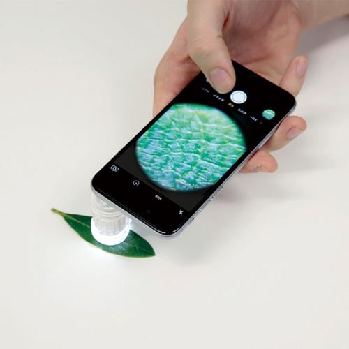 スマホで簡単に撮影できる、かわいく進化したミニサイズ顕微鏡!マルチライト・UVライト機能搭載で小さいのに使えるやつ。スマホで写真が撮れるので、記録を取り、自由研究の機材としてももってこい! |