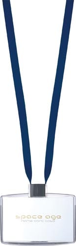 スタイリッシュで使いやすい「spaceage」カードホルダー。大切なカードをなくさない、新開発のダブルのロック機構を採用しています。名札を首にかけたままで、紐の長さ調節が可能 |