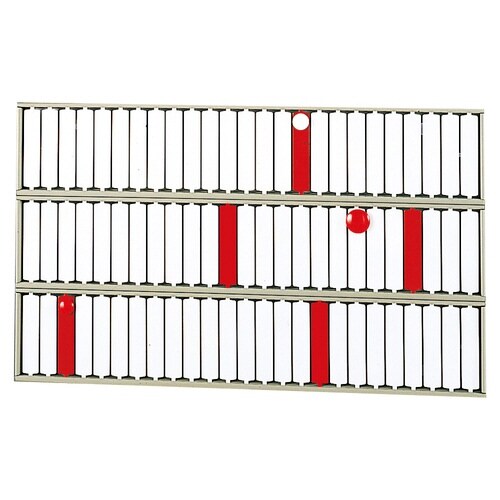カラーによる視覚管理にも最適な、標示札が回転する標示盤。1段あたり赤白プレート25枚付きです。