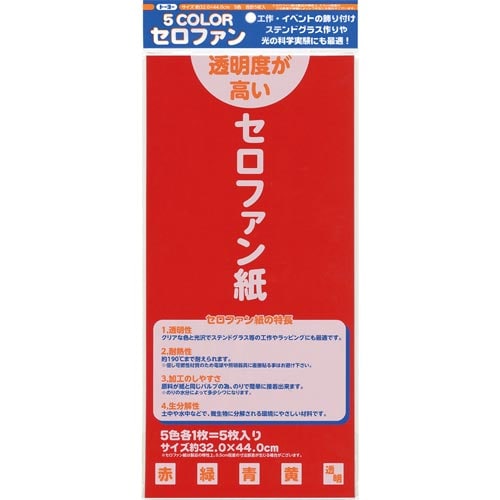 カラーセロファン36×16cm 5色入×15 5色(赤・緑・青・黄・透明) 1セット(5色5枚入×15) 110800