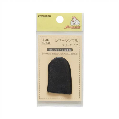 指にフィットするレザーシンブル。針のあたる部分は革が2重になっています。 |