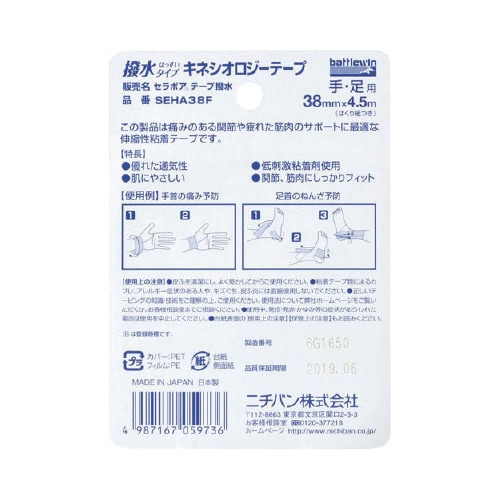 BW キネシオロジーテープ撥水タイプSEHA38F SEHA38F 固定テープ 1巻