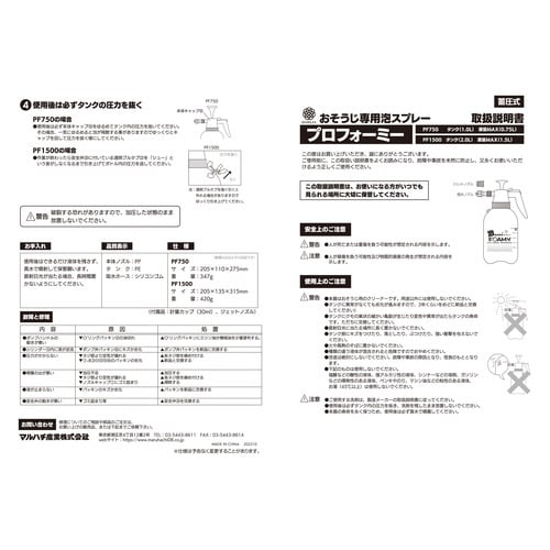 泡状にして吹き付ける、蓄圧式のスプレーです。非常に細かい粒子のクリーミーな泡が広角で効率よく散布できます。電気も電池も使わない蓄圧式の圧力だけ、また洗剤も少量使用で大変経済的 |