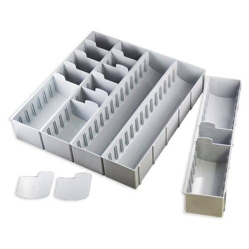 ポケットは天板横に取り付け可能で、ダストボックス等として使用できます。セパレートケースは引き出し内を小分けできます。 |