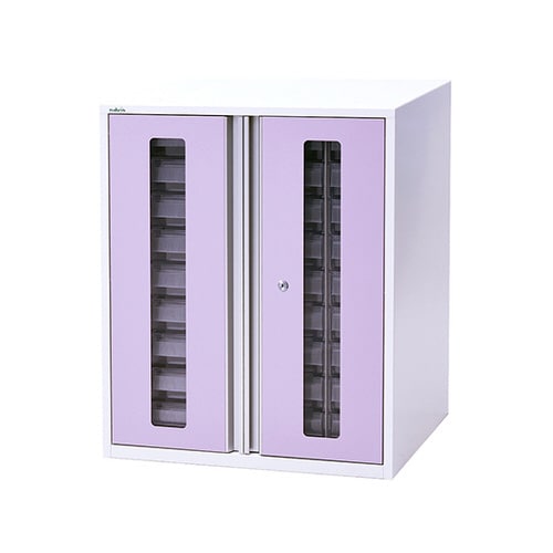 小物ケースWB−8は保護スポンジ(別売)を敷くことでアンプルを安全に収納できます。ケースの抜け落ち防止ストッパーが付いています。鍵付き収納扉のある小物ケースユニットです。 |