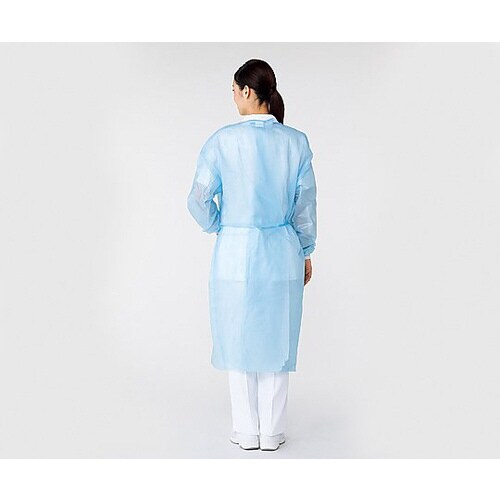 正面・腕に防水加工、背中は撥水性の不織布ですのでムレにくくなっています。身丈が長いので、背の高い方にも使いやすいです。 |