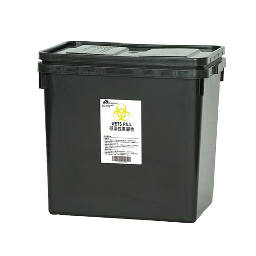 100%リサイクル樹脂を使用しており、耐貫通性・耐衝撃性・密閉性に優れています。ホルダー(別売)を使用すると、直接手を触れることなくフタの開閉ができます。 |