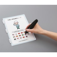 言語を選択し、外国人救急搬送シートの印刷部分にペン先をあてるだけでタッチペン内蔵のスピーカーから音声が流れます。救急のシチュエーションにふさわしい言葉・文章を掲載しています。 |