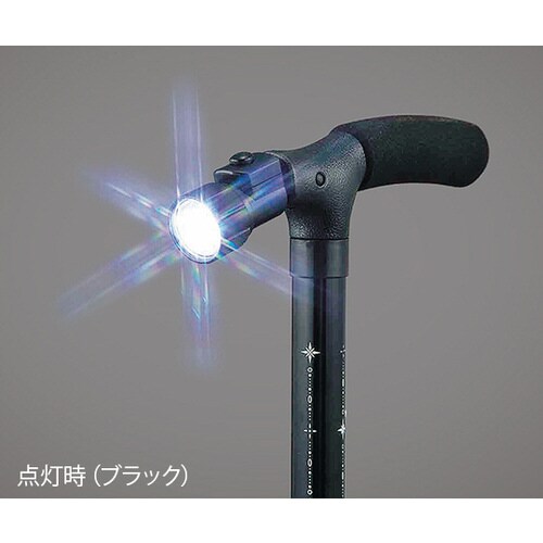 暗い場所でも安心なLEDライト付きです。杖先が足首のように可動し、スムーズな歩行を補助します。 |