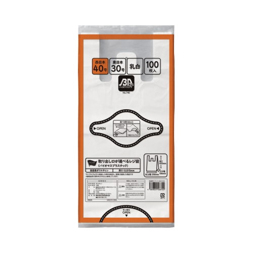 【スーパーセール:通常価格から25%オフ】取り出し口が選べるレジ袋 乳白40号 バイオマスプラスチック 100枚