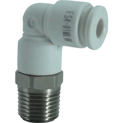 チヨダ ファイブSUSメイルエルボ白4mm・R1/8 FS401MLW チューブ継手 1個 4643-7938