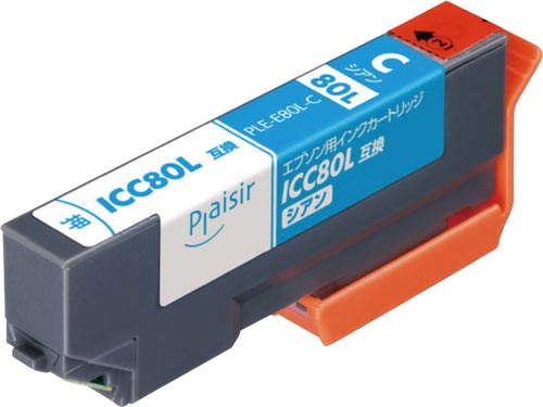 プレジール 互換インクカートリッジ ICC80L シアン ICC80L互換 1個 PLE−E80L−C 互換インクカートリッジ(エプソン EPSON) 4663-6805