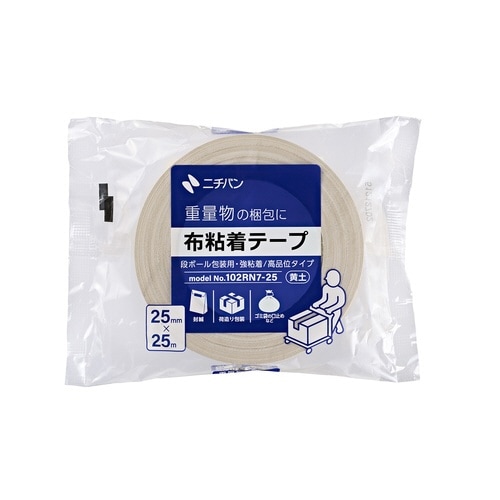 布粘着テープ102N 25mmX25m 黄土 1巻 102N7−25 ガムテープ 布テープ