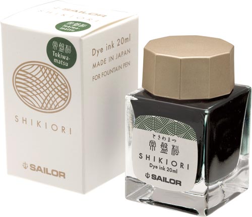 日本の自然が織りなす、四季を感じるモチーフの色の万年筆用ボトルインク。「常盤松(ときわまつ)」雪の重みに耐えながらじっと春を想う松葉の色です。 |