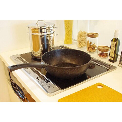 5層のコーティングが施されたIH対応タイプの軽量炒め鍋です。金属ヘラも使用可能です。汚れがこびりつきにくく、取っ手をつなげる鋲が無いので内面がフラット。洗いやすく清潔でお手入れが簡単。 |