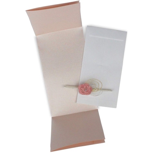 終わりのない形のリースは「永遠」を表し、二人が末永く一緒にいられますように、という願いを込めた祝儀袋です。パール紙と箔押しで品が良く落ち着いたデザイン。 |