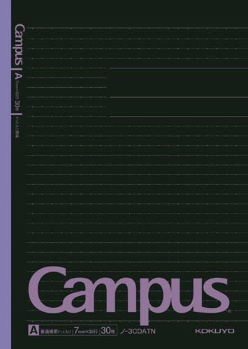 人気のブラックカラーのキャンパスノート(セミB5・A罫ドット入り・30枚)5冊パック。「美しく書く」をサポートするドット入り罫線。ばらけけにくい無線とじです。 |