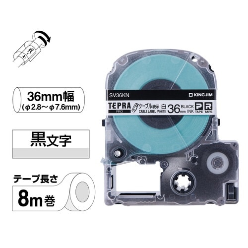 SV36KN「テプラ」PROテープカートリッジ TEPRAケーブル表示ラベル 白・黒文字36mm幅8m巻 SV36KN テプラ(キングジム)用 機能性ラベルテープ/シール 1個
