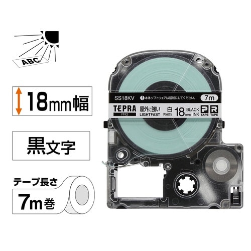 SS18KV「テプラ」PROテープカートリッジ TEPRA屋外に強いラベル 白・黒文字 18mm幅7m巻 SS18KV テプラ(キングジム)用 機能性ラベルテープ/シール 1個