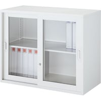 アッセスチール収納庫 幅900×奥行450×高さ730mm 上置き 引き違い(ガラス) 2段 配線穴なし 本体:ブラック、扉:ブラック 1台