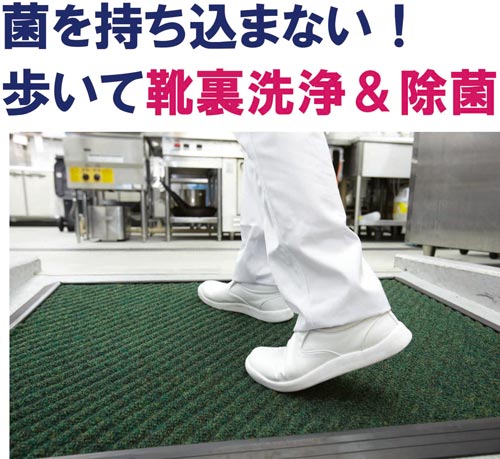 マットに注いだ消毒液が、足元を洗浄し、バイキンを除去します。