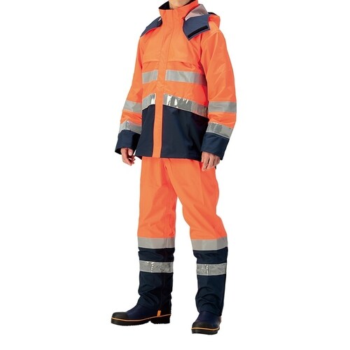 高視認規格JIS T 8127 クラス3に準拠した、高視認雨衣です。上下セットで、リーズナブルな価格です。 |