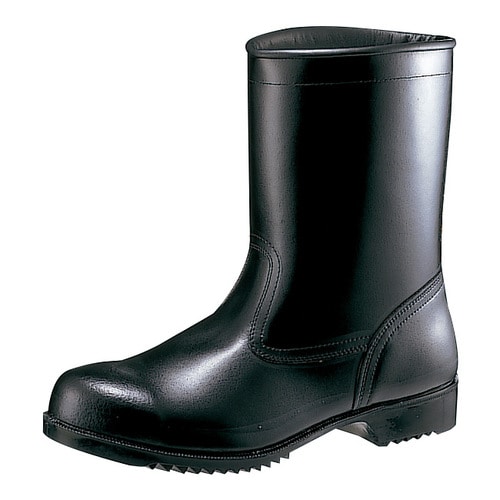 半長靴。油や薬品に強いアッパーと靴底のためハードな職場に最適な安全靴です。靴底を成形する際アッパーを同時に圧着するため耐久性に優れています。圧迫や衝撃から足先を守るベーシックな鋼製先芯を使用。 |