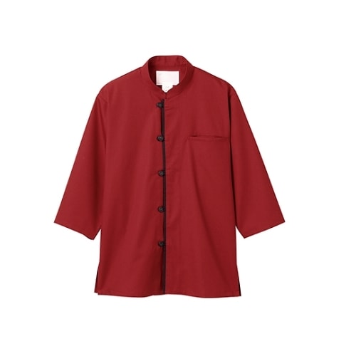 調理シャツ 兼用 7分袖 エンジ/黒 2−635 L 帽子・エプロン・ユニフォーム コックシャツ 1枚