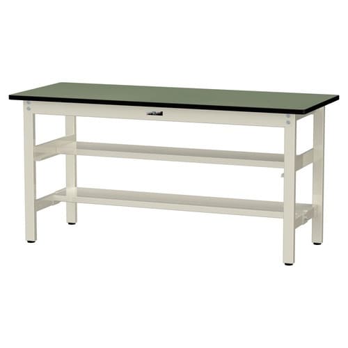 軽量作業台/耐荷重300kg 中間+足元半面棚板 塩ビシート天板 ワークテーブル300シリーズ 幅1500×奥行600×高さ740mm SWR−1560TS1−GI 天板グリーン×脚アイボリー 1台