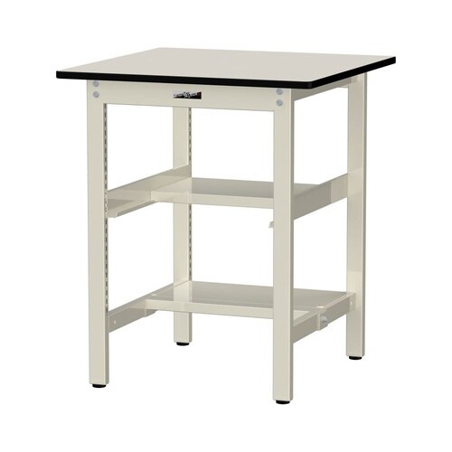 軽量作業台/耐荷重300kg 中間+足元半面棚板 固定式 塩ビシート天板 ワークテーブル300シリーズ 幅750×奥行750×高さ900mm SWRH−775TS1−II アイボリー 1台
