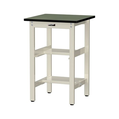 軽量作業台/耐荷重300kg 中間+足元半面棚板 塩ビシート天板 ワークテーブル300シリーズ 幅600×奥行600×高さ900mm SWRH−660TS1−GI 天板グリーン×脚アイボリー 1台