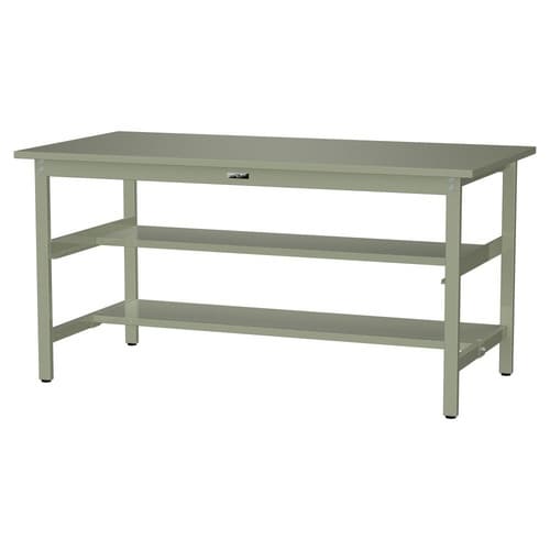 軽量作業台/耐荷重300kg 中間+足元半面棚板 固定式 スチール天板 ワークテーブル300シリーズ 幅1800×奥行900×高さ900mm SWSH−1890TS1−GG グリーン 1台
