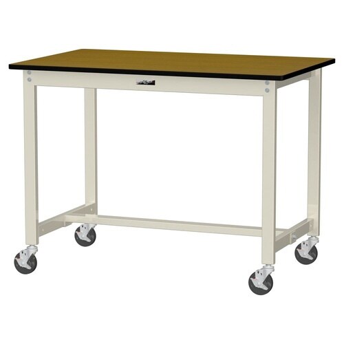 軽量作業台/耐荷重160kg 移動式 ポリエステル天板 ワークテーブル300シリーズ 幅1200×奥行750×高さ900mm SWPHC−1275−MI 天板木目柄×脚アイボリー 1台