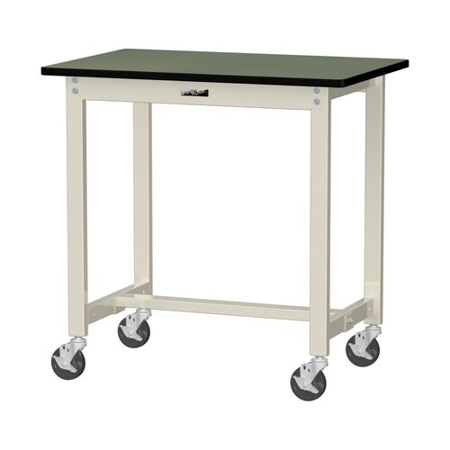 軽量作業台/耐荷重160kg 移動式 塩ビシート天板 ワークテーブル300シリーズ 幅900×奥行600×高さ900mm SWRHC−960−GI 天板グリーン×脚アイボリー 1台